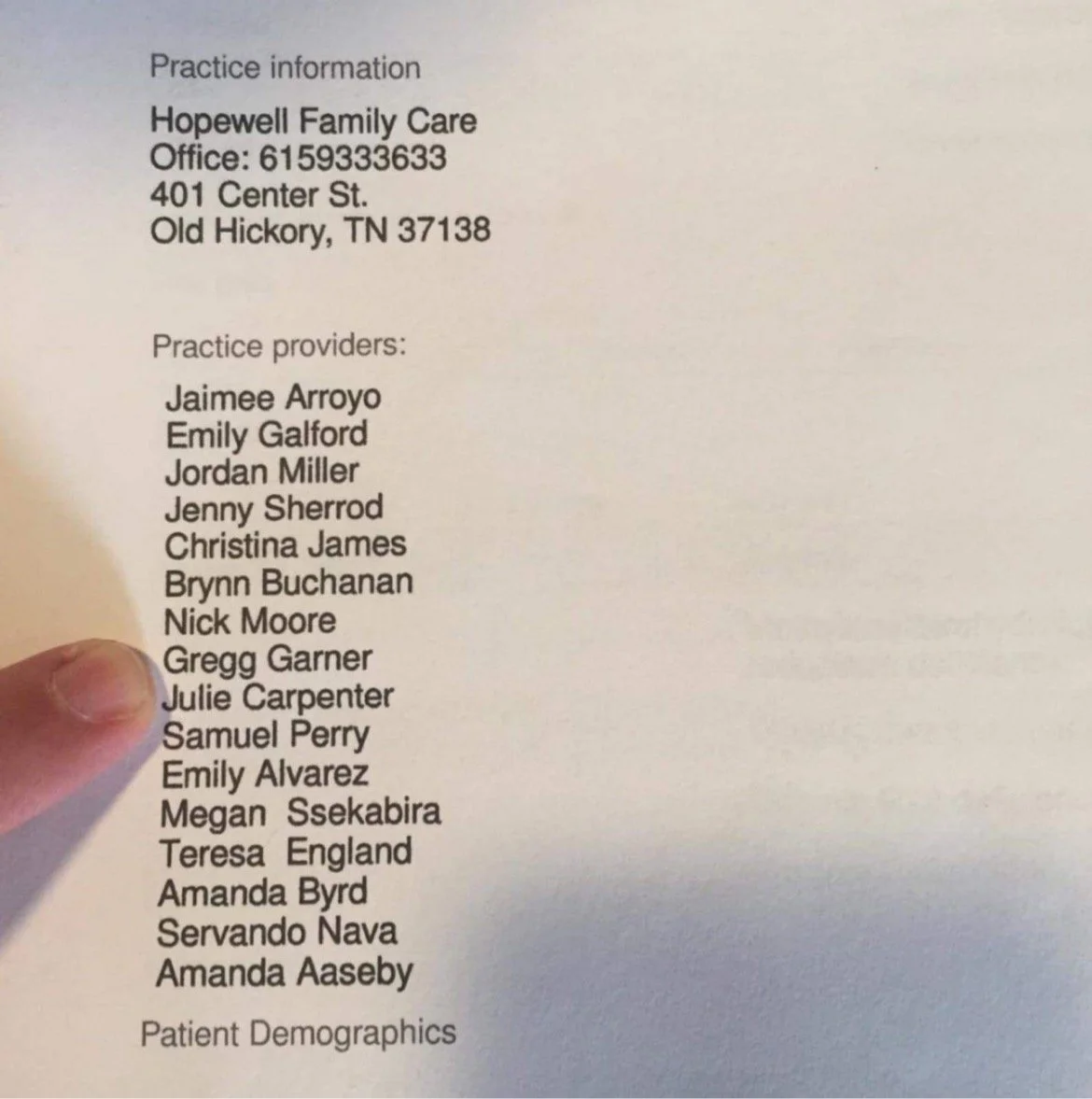 This second photo lists Gregg Garner as a “Practice provider”. 👀